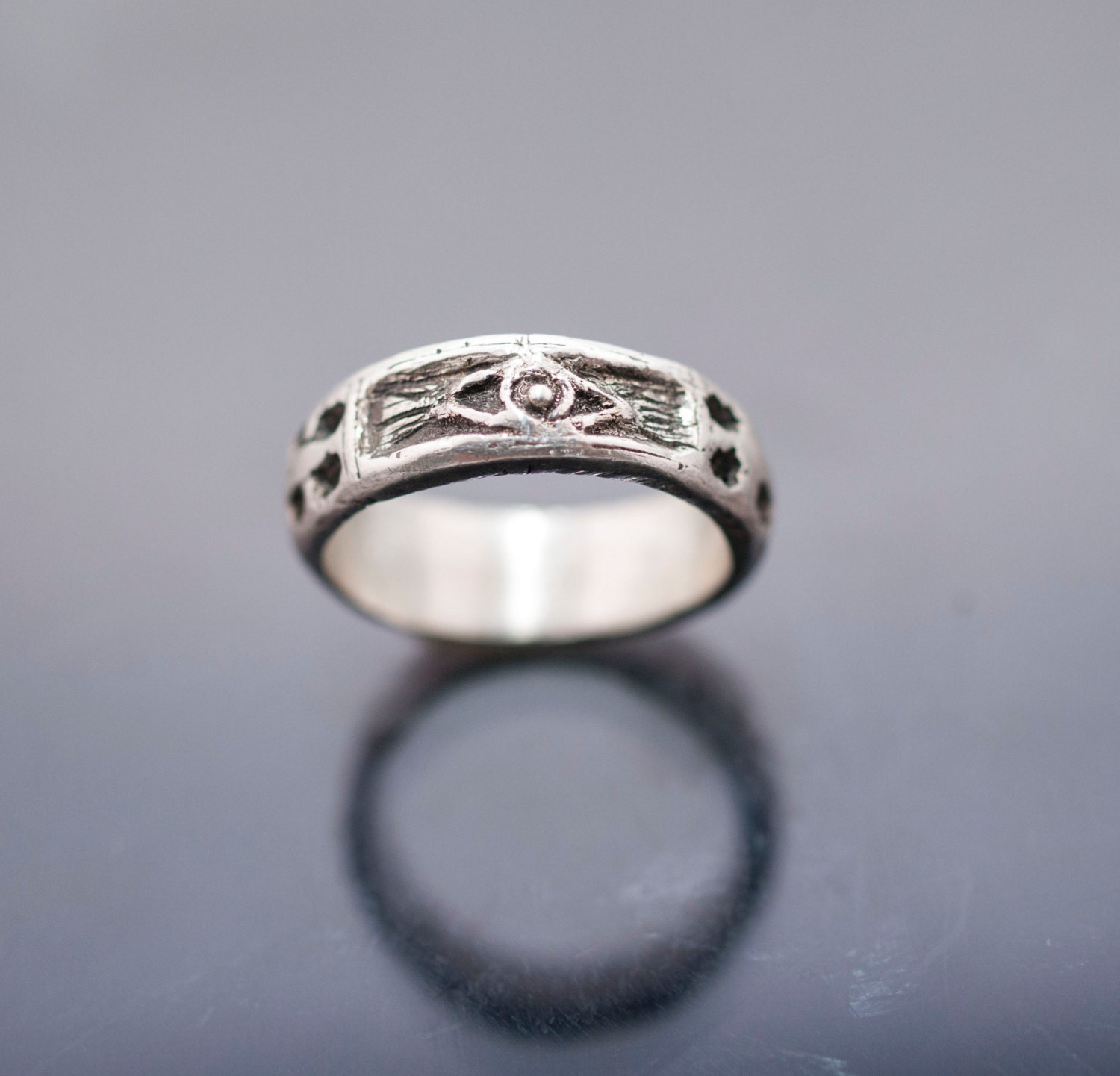This ring is inspired to ancient barbarian rings of medieval age. in this ring there are some Christian symbols like God eye, cross,
